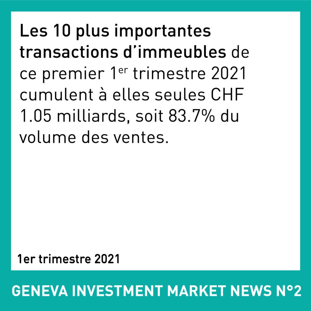 Nous voilà au terme de ce 1er trimestre 2021 qui s’est révélé très encourageant pour la suite de l’année. Au total, on compte 33 ventes d’immeubles pour un volume de CHF 1.26 milliards. À titre de comparaison, le 1er trimestre 2020 comptait 45 transactions pour un total de CHF 832 millions. Si le résultat de ce trimestre s’avère être bien supérieur, c’est pour une raison bien spécifique.