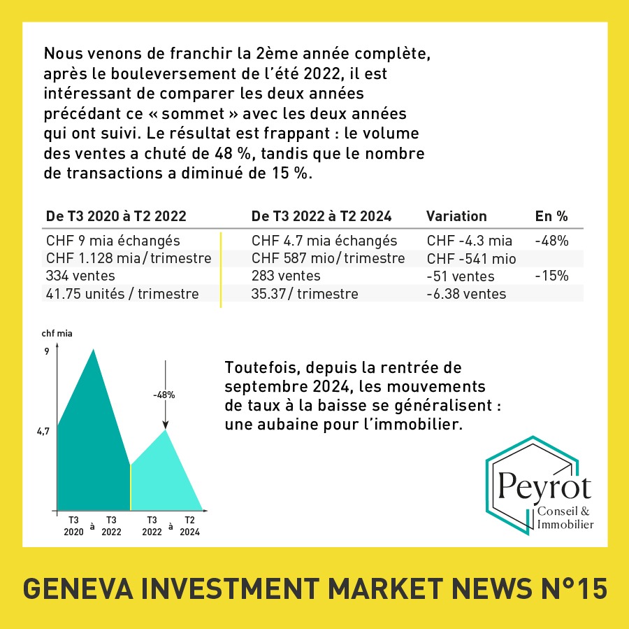 Maintenant que nous venons de franchir la deuxième année complète, après le bouleversement de l’été 2022, il est intéressant de comparer les deux années précédant ce « sommet » avec les deux années qui ont suivi. Le résultat est frappant : le volume des ventes a chuté de 48 %, tandis que le nombre de transactions a diminué de 15 %.